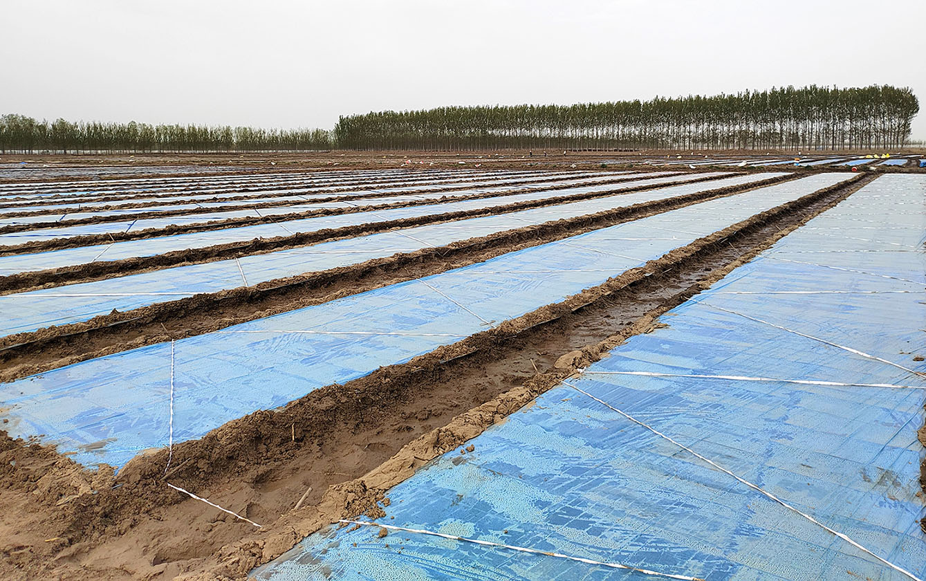 完成播种、及覆膜工作以后的苗床会浸水48小时,在苗床吸足彩稻苗萌发所需的水分后将水排出。