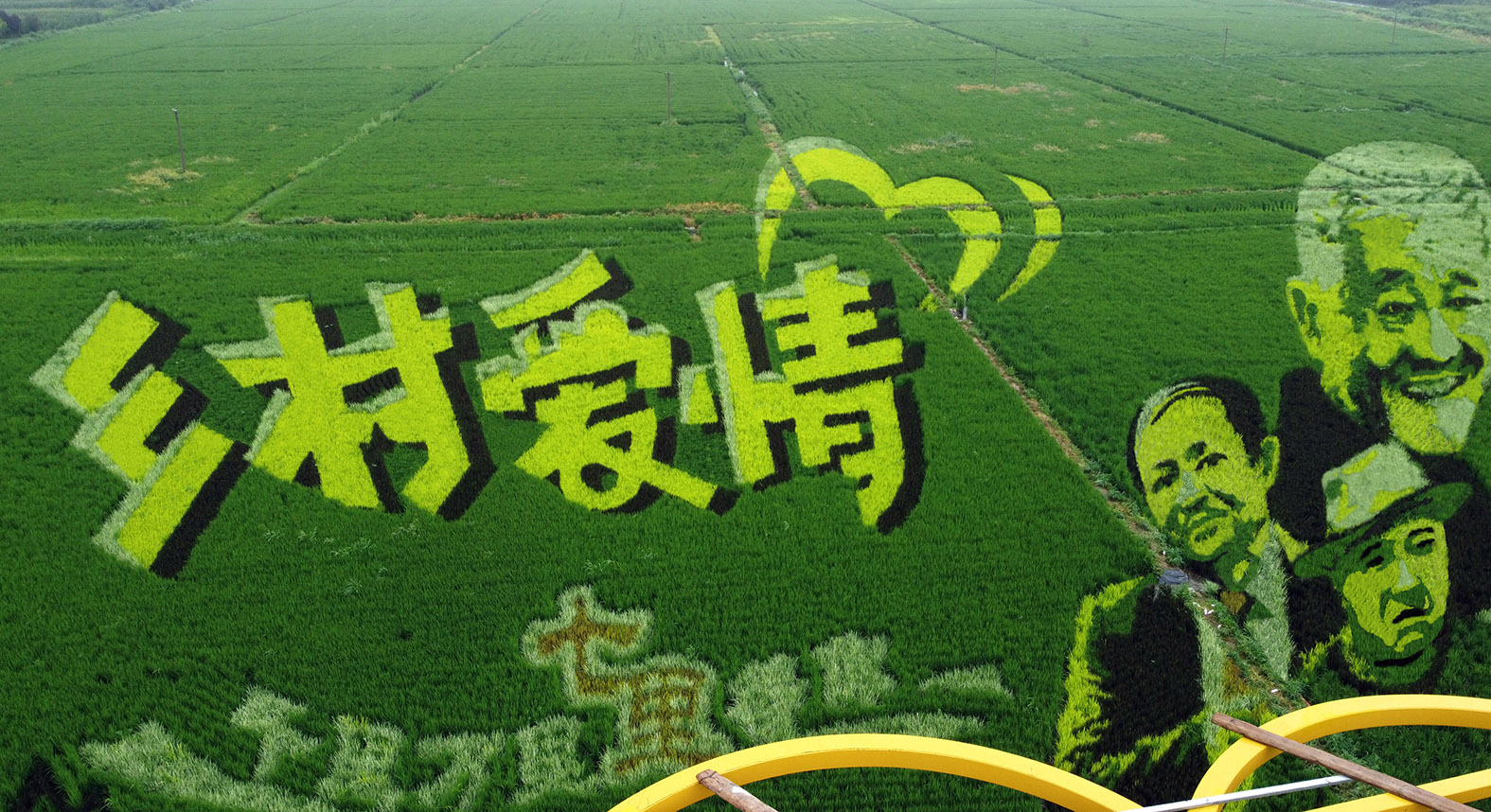 位于本山传媒的电视剧《乡村爱情》取景地,45亩3D稻田画,画面中人物细节是亮点,要精准表现电视剧主创人物的面部特征,整幅画面历时8天完成。