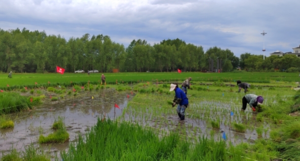 寒带水稻种植的核心关键是抢占农时。大兴安岭脚下常年风大、昼夜温差悬殊,年均积温恰好处于水稻种植的临界线,种植难度极大。除甄选耐寒性强的高寒小粒稻种外,翰墨稻艺依托多年东北稻田画项目实操经验,联动哈尔滨分部团队全力支援,结合大模型气候推演与实地气象观测,精准研判种植窗口期,最终较往年常规农户提前 10 天完成彩稻插秧,为稻田画精准成型、色彩呈现筑牢基础。