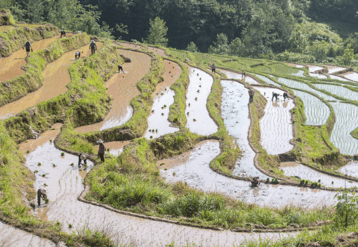3 月稻田画重点推进省份:福建、云南。彩稻从插秧到成型成景,还需近 1 个月生长期,大家可根据本地气候灵活调整施工节奏。