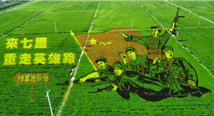 最美的画卷献给最可爱的人,曾被誉为“万岁军”的中国人民志愿军38军就在铁岭七里村踏出了保家卫国的第一步。这幅稻田画作品已经成为当地旅游部门的网红打卡地,创作立意和完成效果受到了当地政府的高度评价。