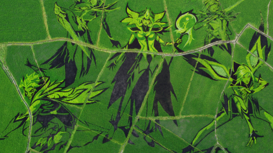 LOL可谓是网游界的绝对一哥,在腾讯和拳头两大行业巨头的“技术”加持下,用一句天生富贵,自带人气来形容毫不为过,我司作为其2024冠军群像稻田画的执行方颇感荣幸,画面以夺冠阵容剪影为创作灵感,将智慧农业与人气网游有机结合到了一起,此作已经成为LOL秋季宣传片的核心卖点,也第一次用艺术的方式让年轻人感受到了农业的浪漫,用实际行动践行了“科技引领,不忘三农”的服务宗旨。