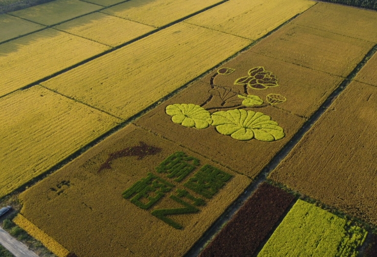 作为中国唯一的官方“大城市”,铁岭种植稻田画有一个难点,那就是风大,这对彩稻的抗倒伏能力有了更高的要求,对后期的种植管理也有了全新的肥料调整。最终翰墨稻艺运用多年的一线经验成功从数十种彩稻里面成功选择了3种茎叶最发达的品种,不仅完美完成画面的最初设想,而且彩稻比旁边的普稻更加抵受住了强风的干扰。