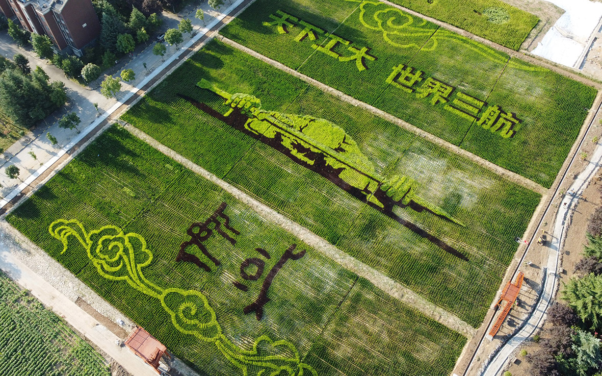 北京翰墨稻艺团队以其国内领先的稻田景观设计理念与自身技术创新与艺术表达的完美结合,倾心打造的东篱菊苑项目不仅是西北工业大学的校园景观亮点,也成为传播西工大 "三航"(航空、航天、航海) 特色文化的重要载体。
