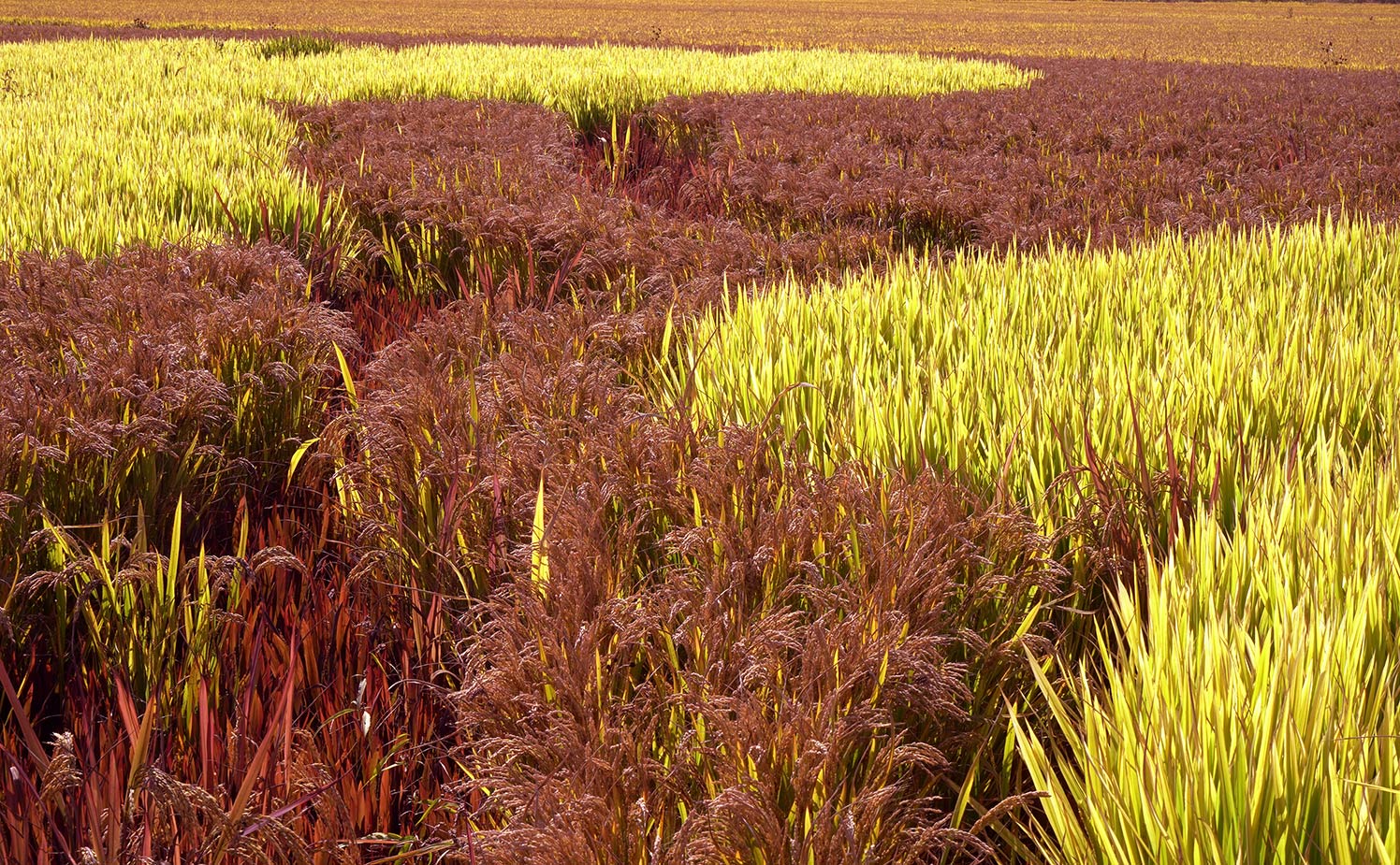 彩色水稻完成灌浆阶段进入成熟期,叶片及稻穗均呈现稳定的红色