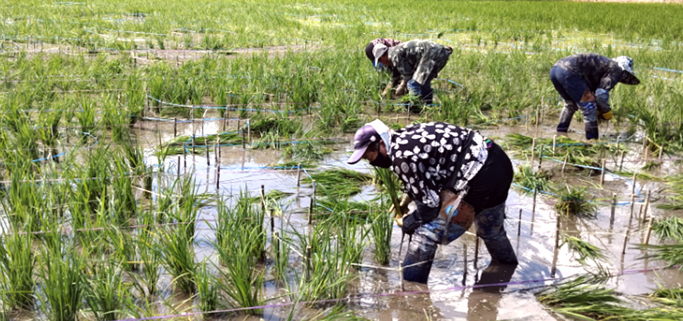在定位扦插阶段更是不惜工本,根据不同地块的不同土壤条件采用分区分块种植法,在不同的地块采用不同的彩稻品种,力争将科学的精细化管理带到基层。