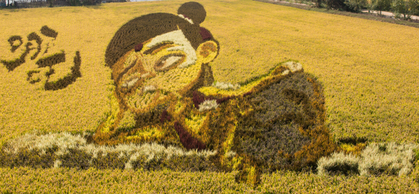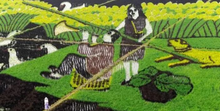 随着绿色乡村概念的兴起,最近几年越来越来越多的地方选择用稻田画来打造自己的文化名片,一来绿色环保,完全没有科技和狠活,二来也弥补了现在户外广告审核麻烦的短板,巨大的稻田画无论做地标景点还是做产品宣传都是不二之选,而且在农业项目保护下审核基本不受影响,如何发挥就看甲方爸爸的意图了。
