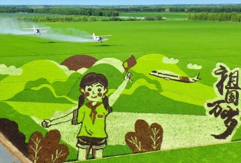 要确定一幅稻田画的彩稻数量,那么一定要先搞清画面的有效图案占比有多少,这样才能根据实际种植面积来确定种子数量。但需要注意的是不同的图案设计思路所需要的彩稻种子也不一样,比如下面这幅稻田画的图占比就很高,但由于设计之初就选用了绿色普稻作为大背景和填充色,只有边缘部分才用红白两色彩稻修饰勾边,所以实际的彩稻用量就比较低,也是一种典型的节约型方案。